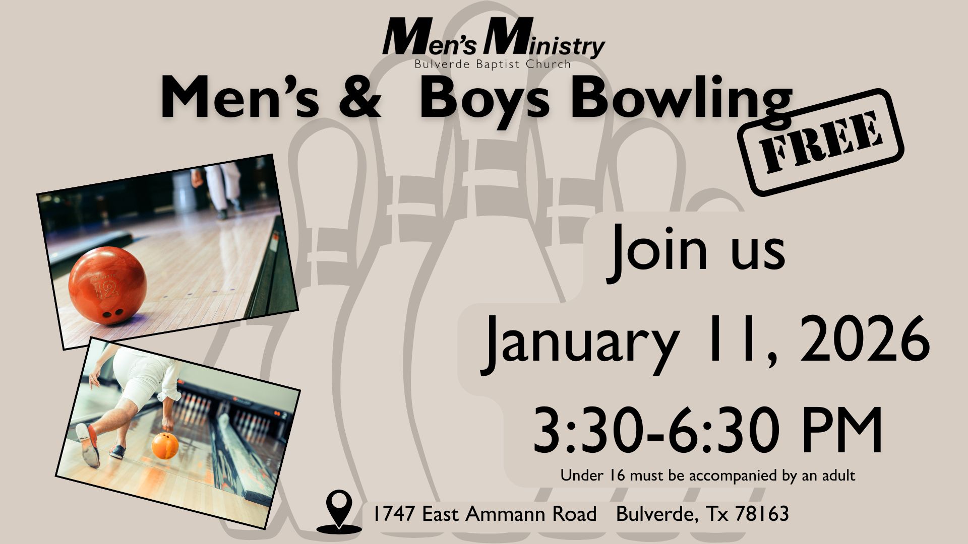 Join the Men's Ministry for a bowling fellowship. You are guaranteed to have a ball.
